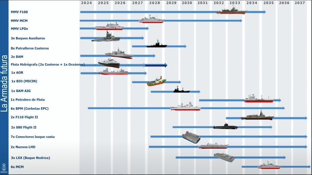 - Se han ordenado y dotado de fondos todas las MLUs previstas, las 5 F100, los dos LPD, y los seis cazaminas clase Segura.