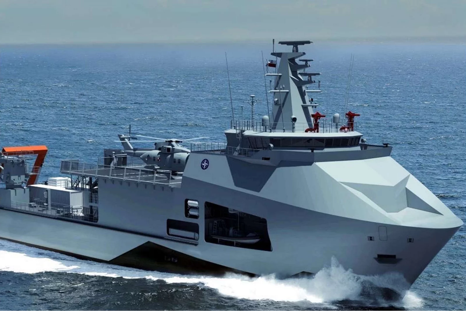 El diseño contempla una eslora de 88 metros y una manga de 17 metros, pensado para operaciones tanto en aguas profundas como poco profundas. Puede alcanzar velocidades superiores a los 18 nudos y está equipado con motores que proporcionan seis megavatios de potencia. Su diseño tiene capacidad para una tripulación de 30 a 60 personas y ofrece una maniobrabilidad avanzada. Poco más se ha comentado, abajo una muestra del diseño presentado.